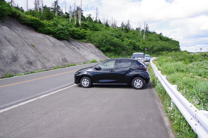 芝草平の静かさとは裏腹に蔵王ハイラインは駐車場の空き待ちで大渋滞。